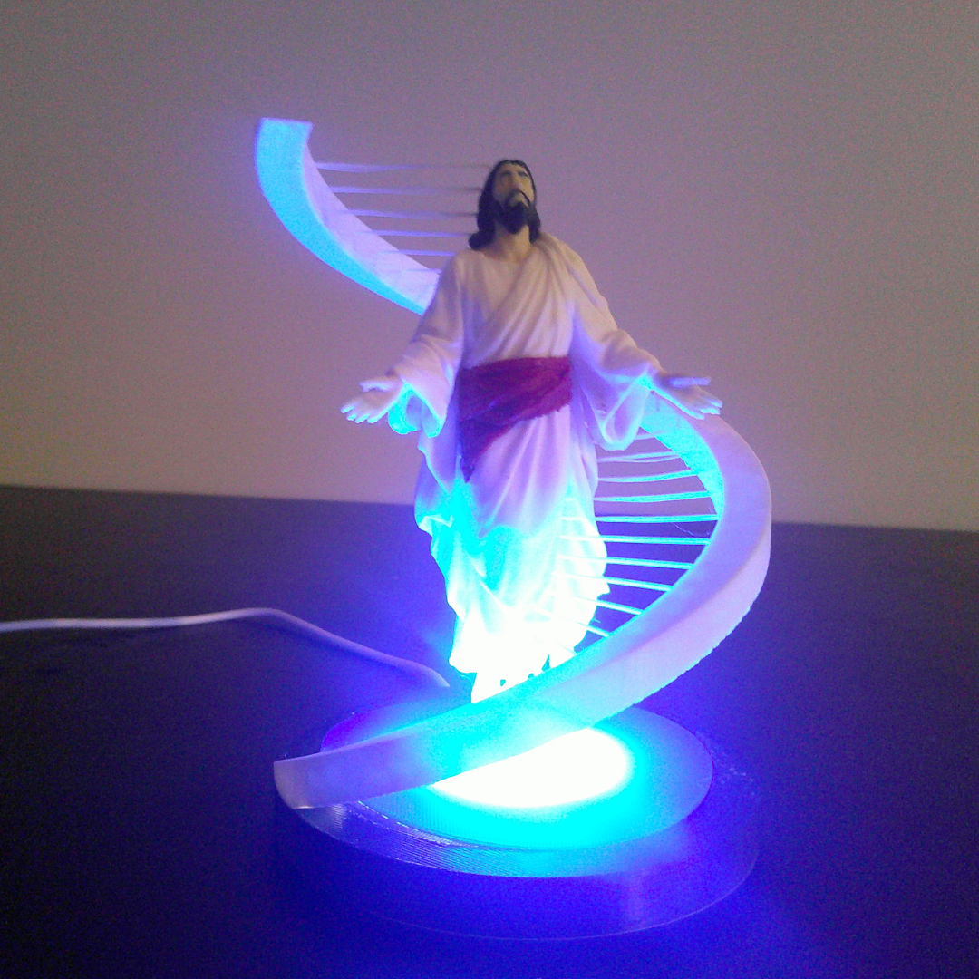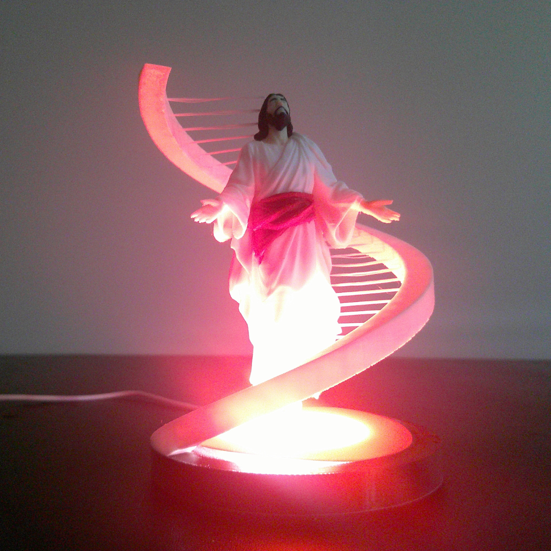 A color-changing light featuring a floating-style figure of Jesus, designed to create a calm and meaningful atmosphere.