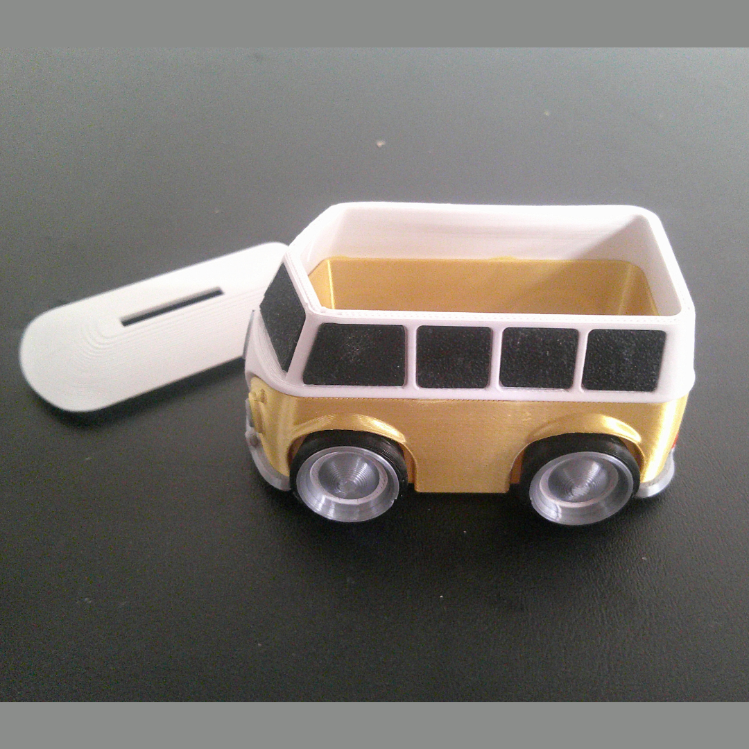 A VW bus-inspired coin bank that adds a fun, nostalgic touch while helping you save spare change.